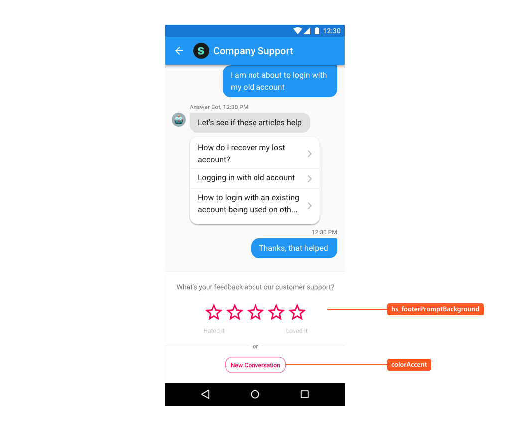 hs__footerPromptBackgroundColor of footer background in FAQ and Conversation screens.