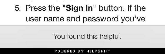 | You didn't find this helpful. | Feedback text for mark unhelpful button in single faq screen. ![]() |
