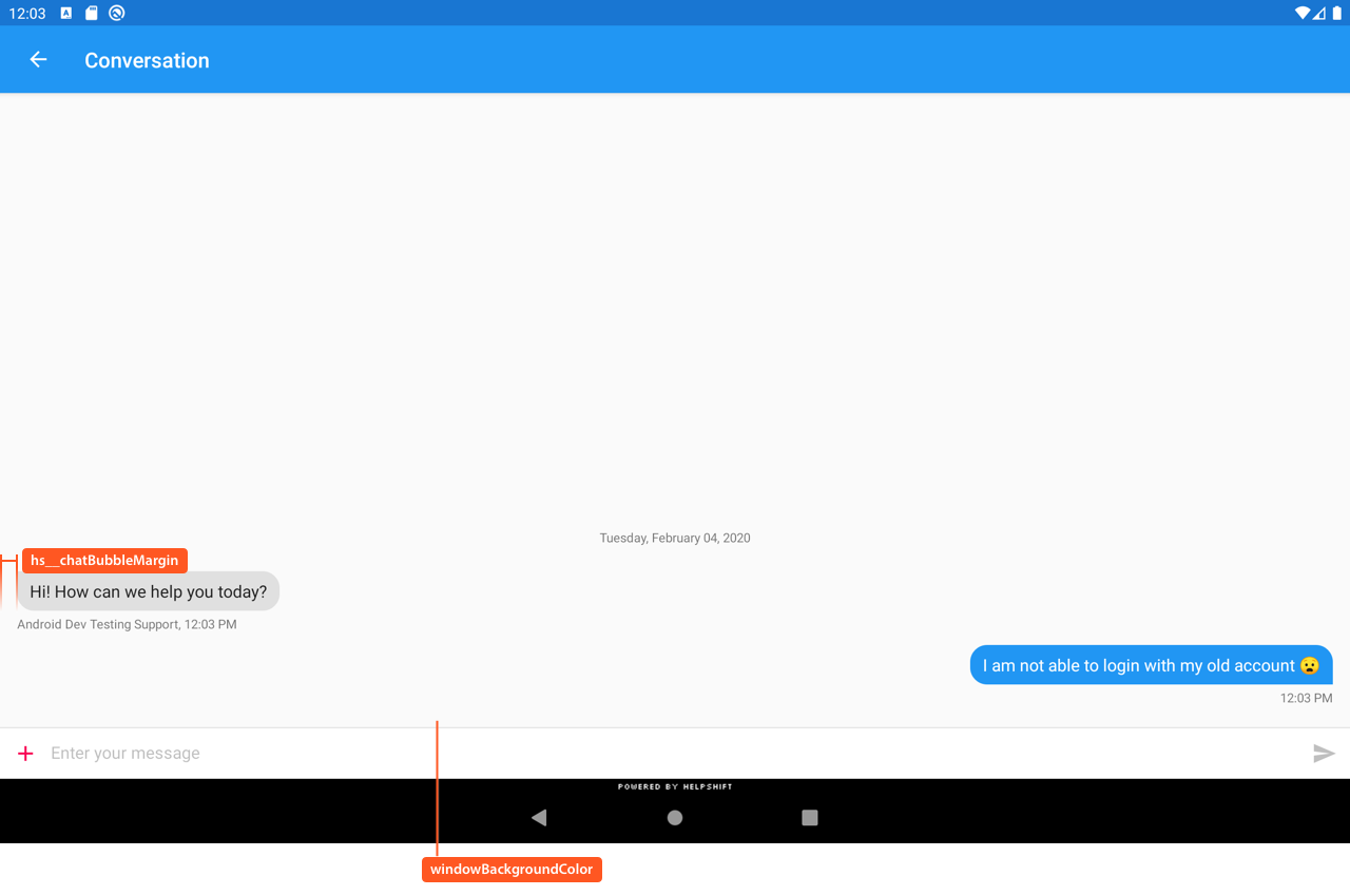 The following illustrates use of these styleable attributes over Helpshift SDK's UI: