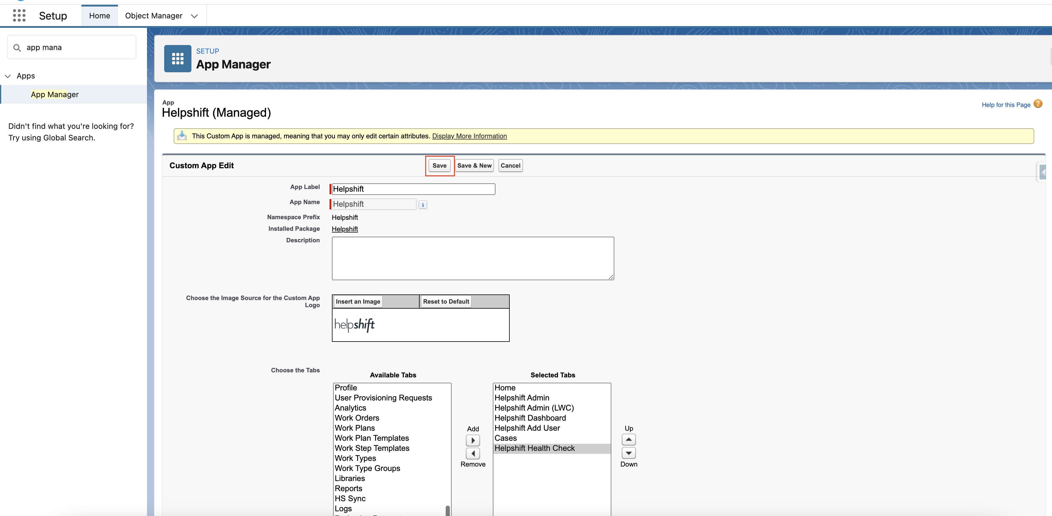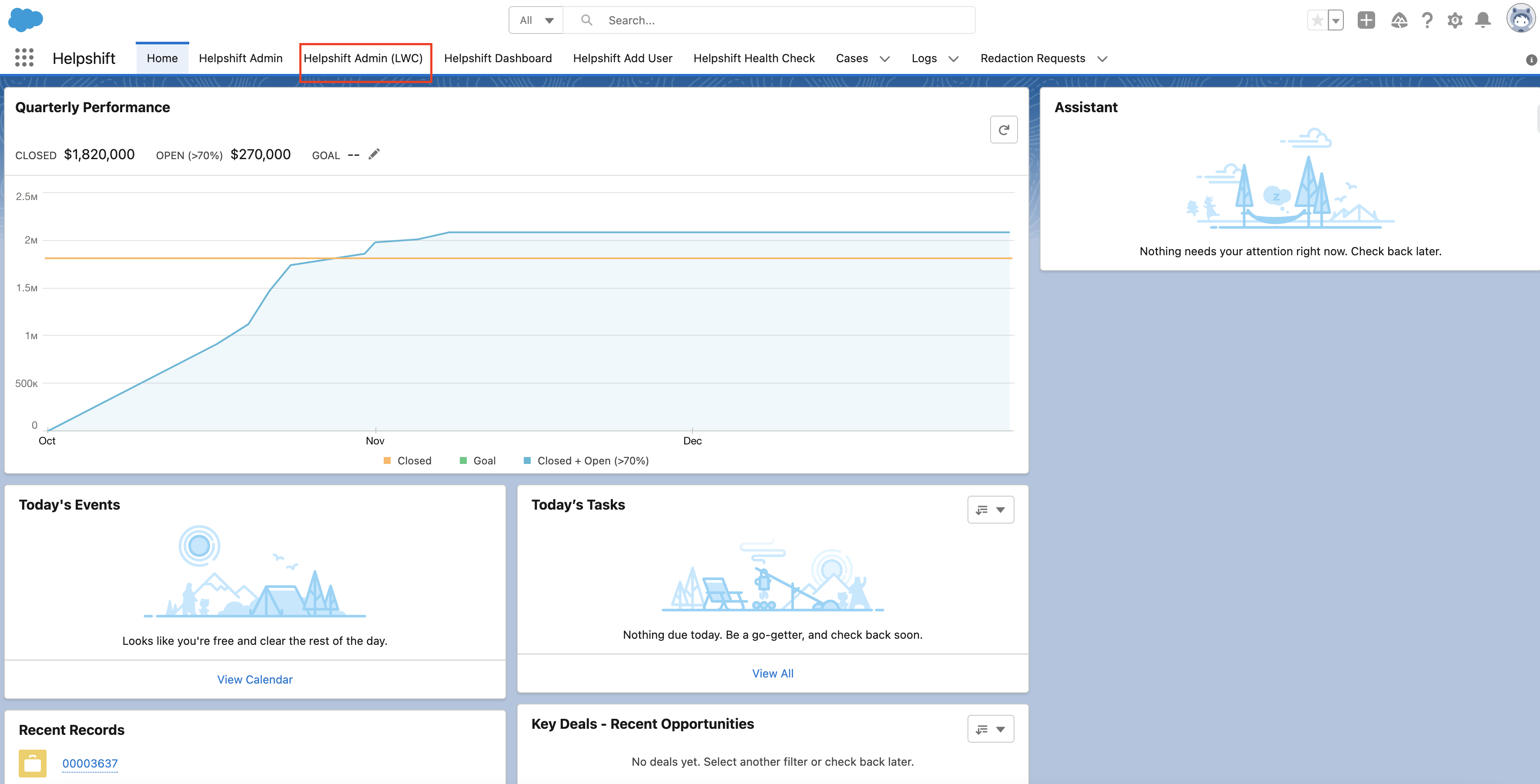 2. Helpshift Admin (LWC) tab is automatically included in the Helpshift app