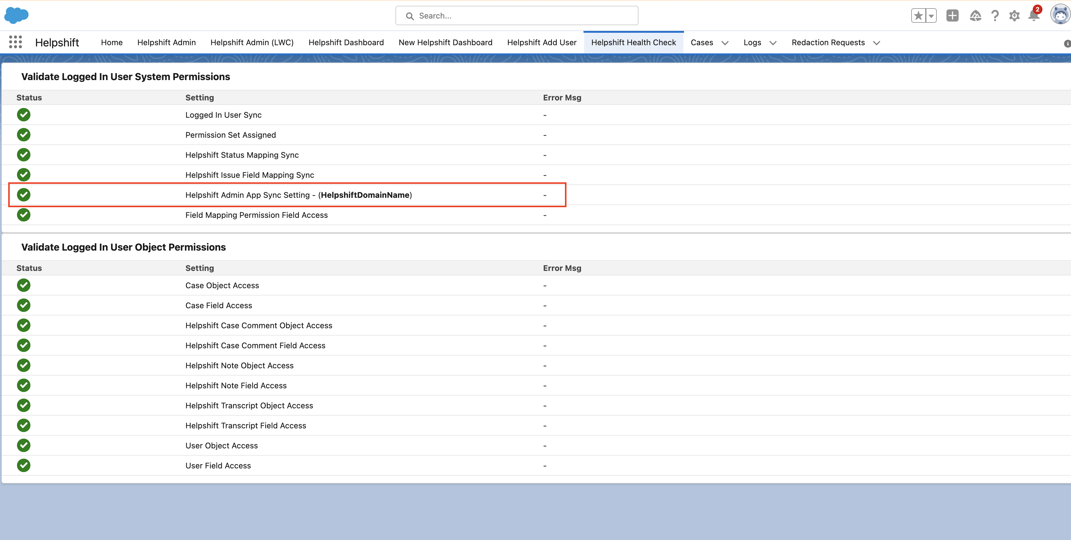 5. Click on the Helpshift Health Check tab and ensure there are no errors