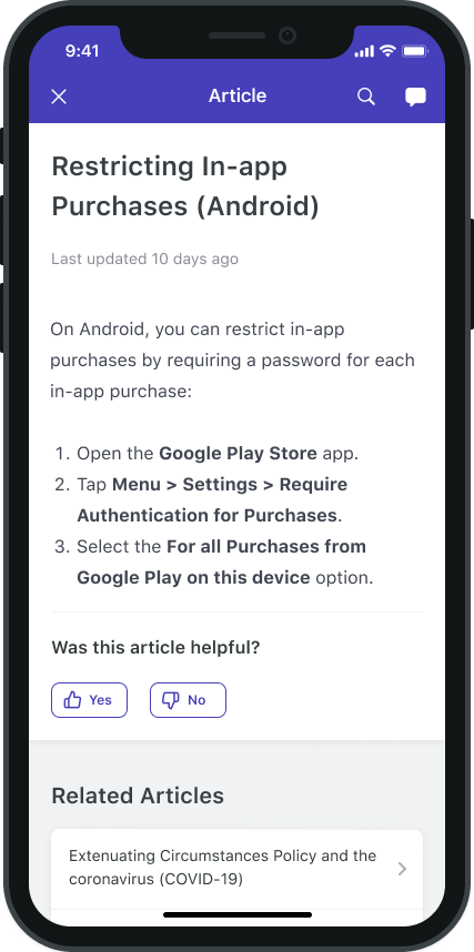 | Example Code | [Helpshift showSingleFAQ:faqId with:self config:configDictionary]; where faqId is the publishId of that particular FAQ and configDictionary is a NSDictionary that represents the configuration that needs to be set to the FAQ screen |